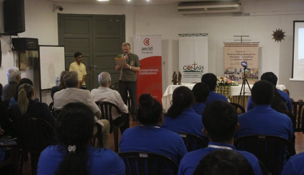 Se llevó a cabo la apertura del “Diplomado en Prácticas Pedagógicas para la Enseñanza – Aprendizaje en Contextos Indígenas”, con la certificación de la Universidad Nacional de Itapúa (UNI) y la Cooperación de la Agencia Española – AECID, y el acompañamiento de la Coordinación Nacional de la Pastoral Indígena (CONAPI) – CEP. El evento se realizó el viernes 6 de febrero a las 9:00hs en el ex Seminario Metropolitano con representantes del MEC, UNI, INDI, CEADUC, UCA, AECID, entre otros.